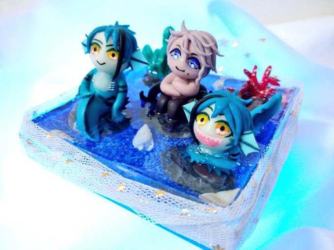 9 54 樹脂粘土でオクタ組~(*ˊˋ*)🐙🐬🦈 この3人の関係性いいよね(๑´ლ`๑)フフ♡ #ツイステファンアート #ツイステ手芸部 20/06/03 03:00