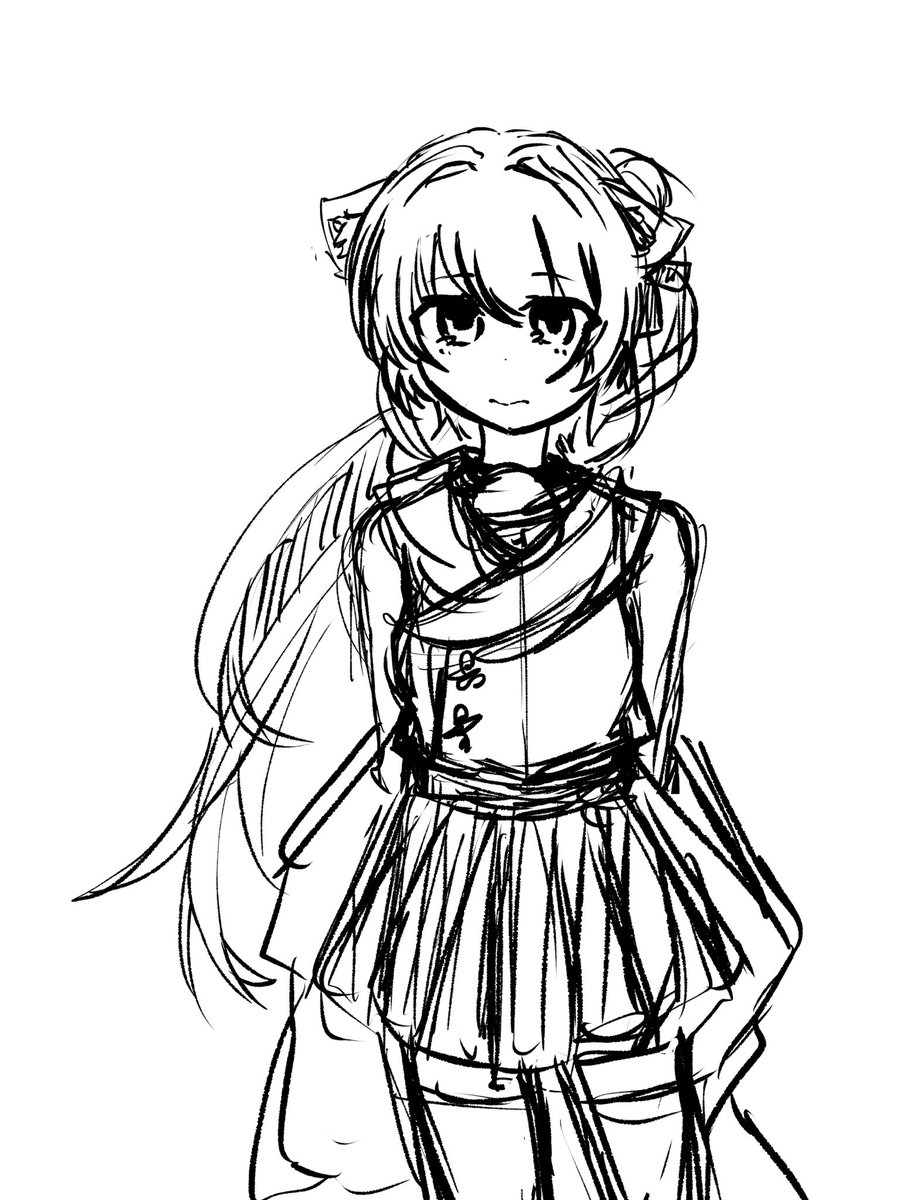4 15 #アズレン版深夜の真剣お絵かき60分一本勝負 色塗り間に合わないので下書き置きます・・・ タシュケントちゃん〜 21/07/20 23:06