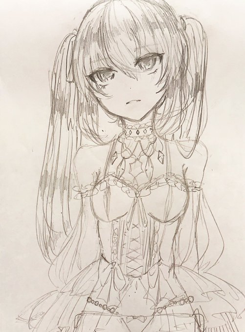 ランジェリー描くの楽しいいいいい ツインテはこの高さが好きいい #絵描きさんと繋がりたい