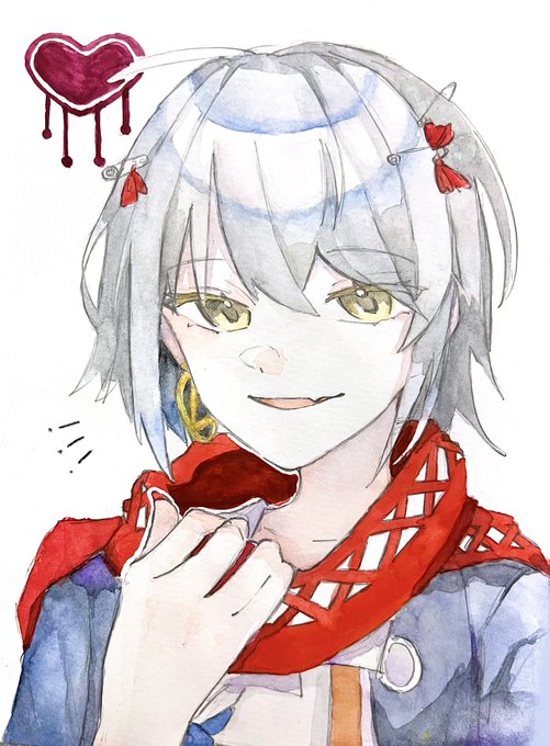 こういうことがあったなと思って描いてたけど、動画見たら割り箸使ってたね.. そして使い方が特殊だった..........(服全く違います) #しろっぽ #白尾絵描きさんと繋がりたい