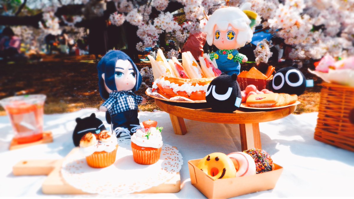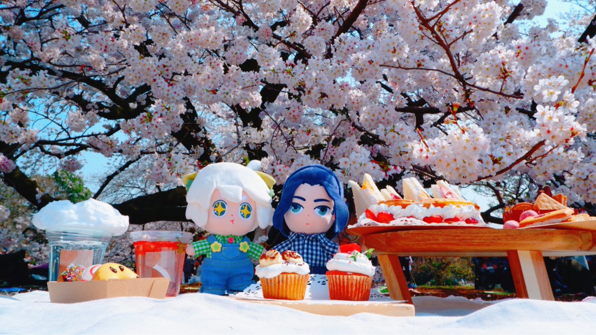 春服でお花のボタンと明るめの生地で✨ デニム地初めて使ったけどステッチが楽しくてハマりそう🥳 最高のピクニック日和〜🌸お花散る前に行けてよかった🥰 小黑沢山お食べ〜🍴 #羅小黒手芸部