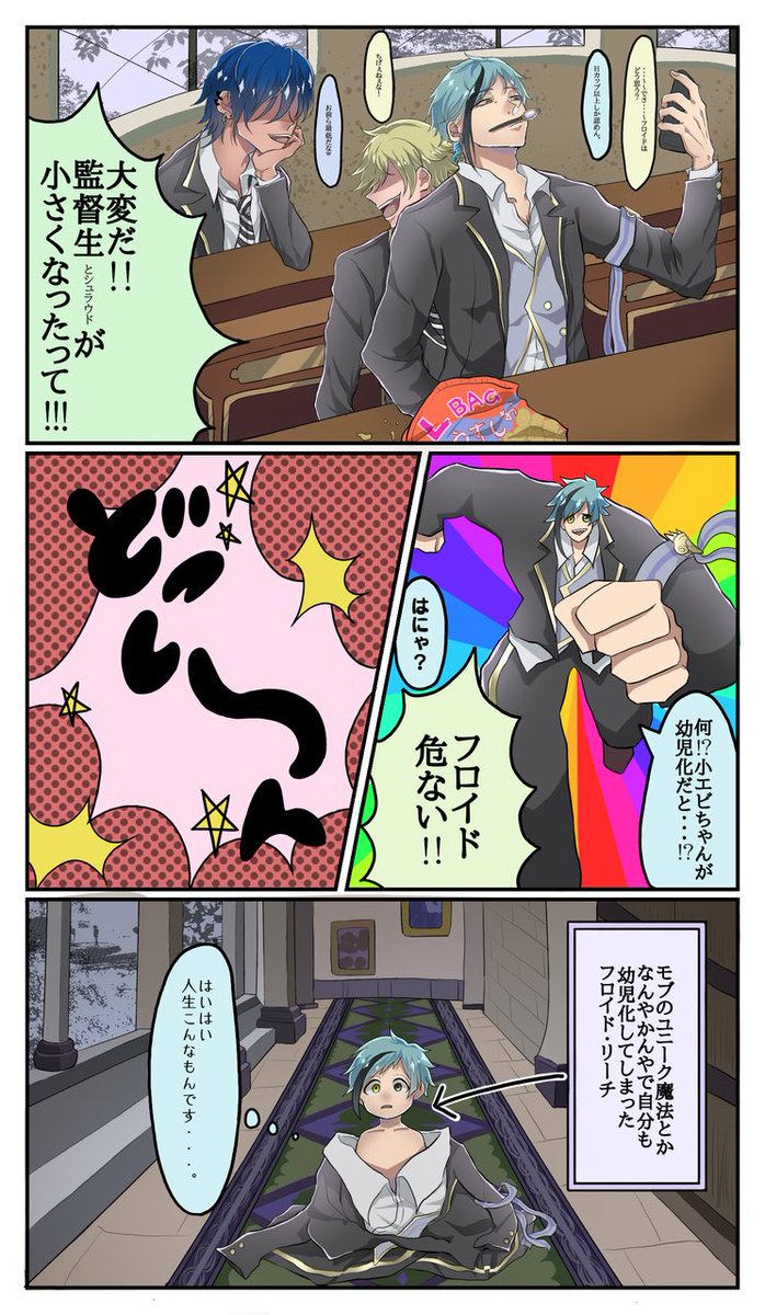 84 1669 フロ監前提のフロ+グリ。🐬と🦐は会話だけ。🦈先輩と🐱が仲良くしてるだけの姿を100年みたい。(内容はファンアートかと思ったけど一応フロ監なので…) #twstプラス 20/12/06 11:16