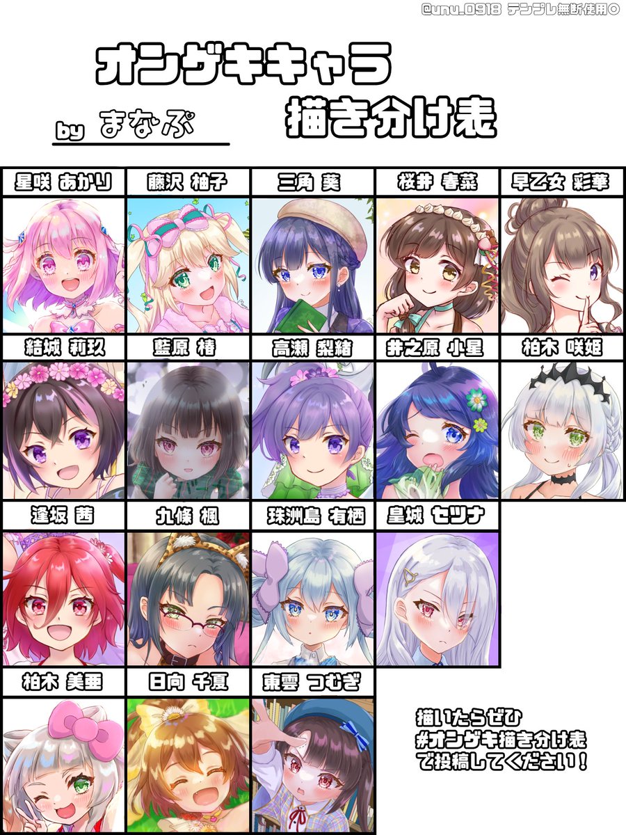 過去絵で埋めてみたけど昔過ぎて今と絵柄違う子もいるからいつか新規で描きます! #オンゲキ描き分け表