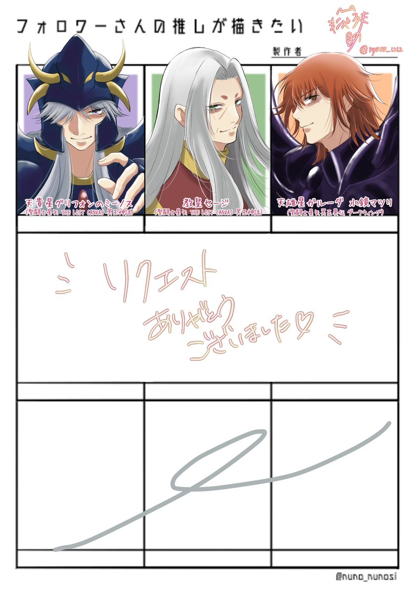 お待たせしました〜! 第一弾に続き第二弾の方でも沢山のリクエスト本当にありがとうございました💖 #フォロワーさんの推しが描きたい twitter.com/nyaro_1212/sta…