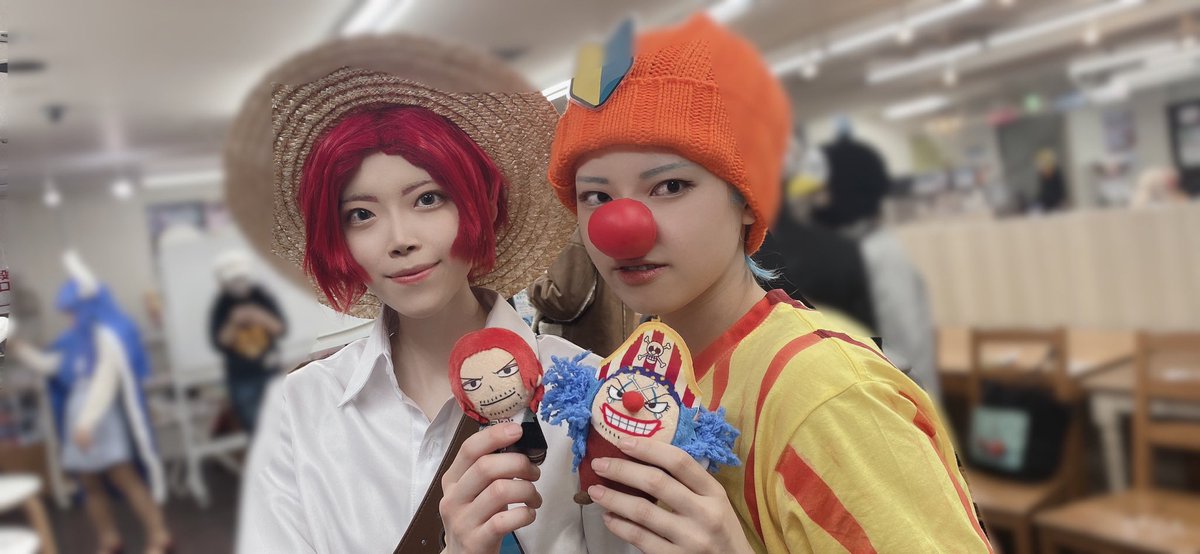 初めて参加したけど楽しかった〜〜! 子シャンクスでした🙌 バギーちゃんとツーショ撮るの忘れてたのでひよこさんに頂いたお写真🫢 ロナルドくんはシャンバギの保護者でした #ハコアム大阪オフ会 #海賊オフ会