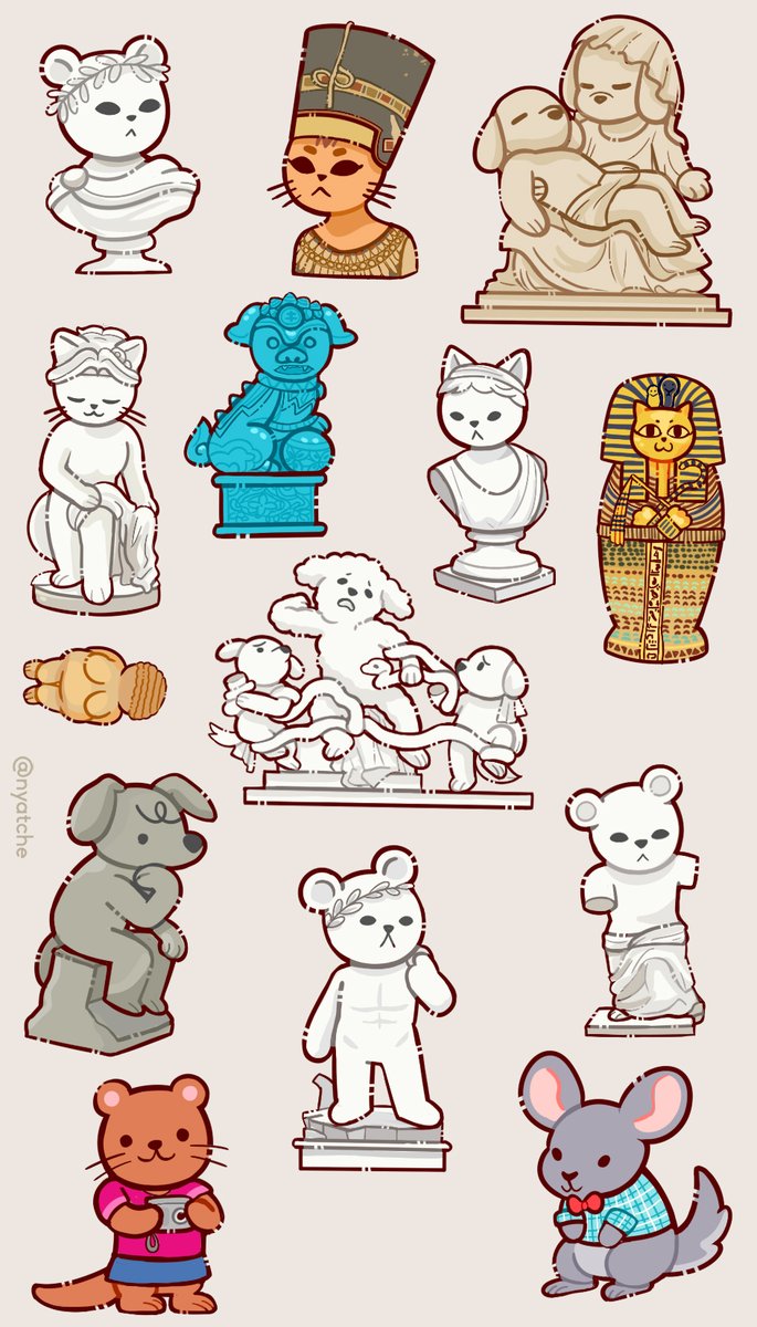 Primeira cartela pro meu catarse assinaturas desse mês! O tema é bichinhos x museu, e você pode garantir seu kit apoiando até dia 31! catarse.me/nyatche