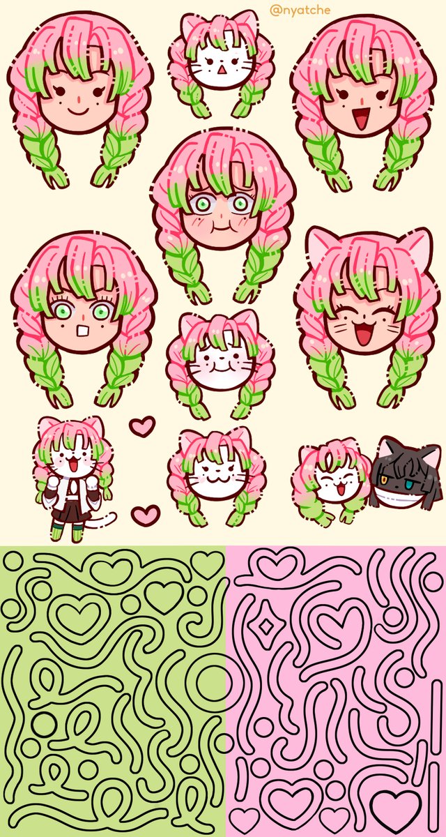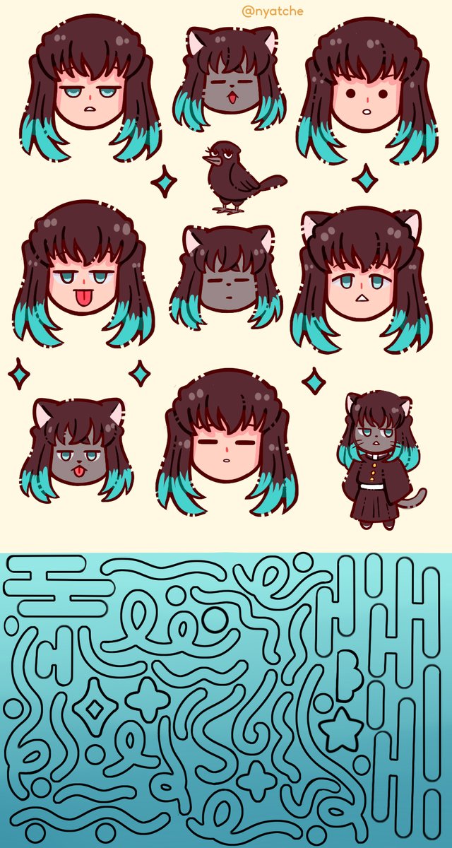Só pra lembrar que fiz cartelas da Mitsuri e do Muichiro pra essa temporada e que elas estão disponíveis na loja <3 nyatche.iluria.com