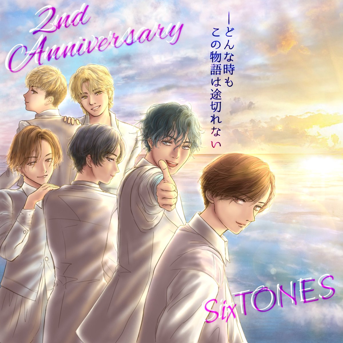 #SixTONESデビュー2周年 おめでとう‼️🎊 これからもずーっと6人でいて下さい🙏✨ 周年絵間に合いました☺️ テーマはEverlasting♬ #いつもありがとうSixTONES #共鳴する3年目へ