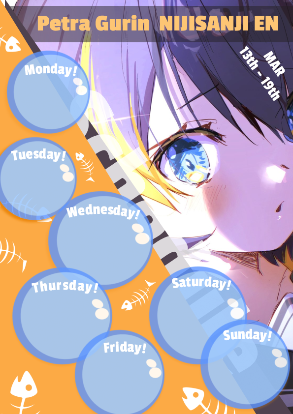 Just a fun little schedule layout I tried today in between other projects. #PetraGurin #PetraArt #Vtubers Amazing artwork! is done by @daisy_bijutsu please check out there profile they do some awsome vtuber themed arts!
