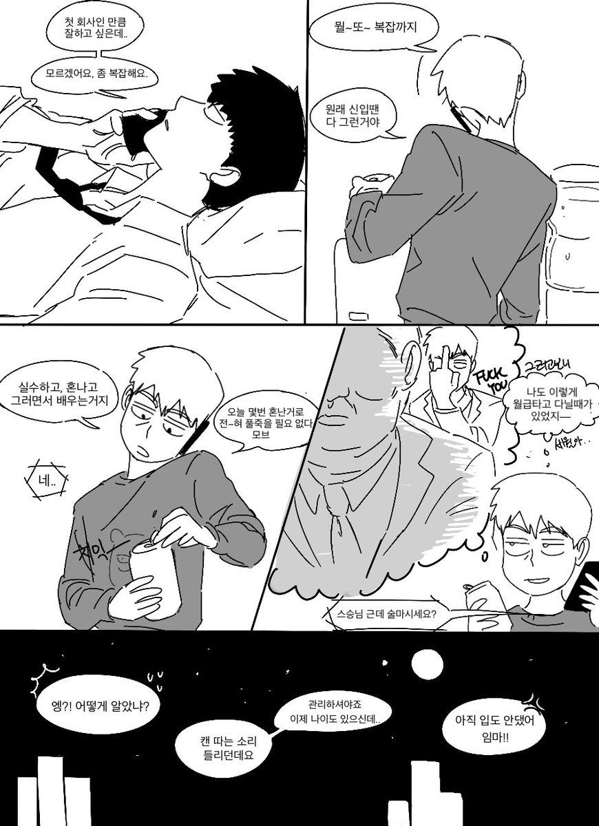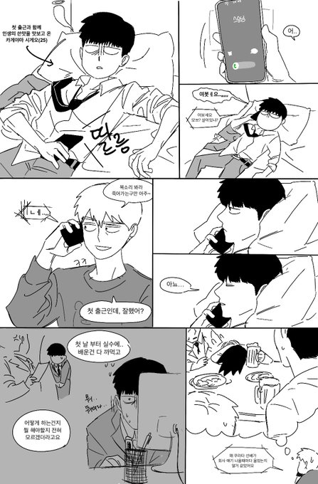 모브 첫출근 만화.. 인데 왜 그린지 모르겟삼