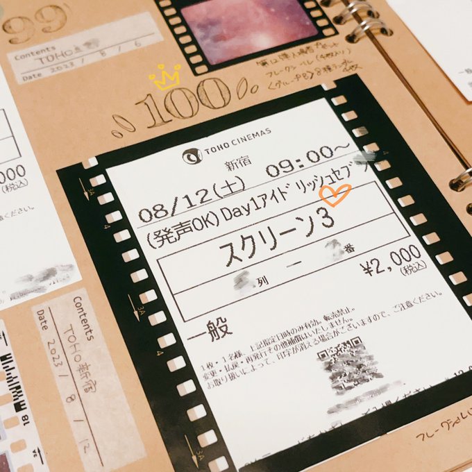 424 5319 映画の半券貼ってるアルバムの表紙🙌フレークシール貼った🌈 23/08/13 21:49