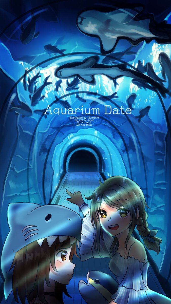 Aquarium Date with @yumomori I want to go to an aquarium as pretty as this u.u #digitalart #MediBang #illustration
