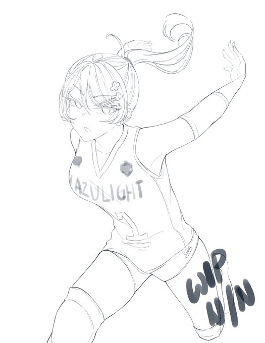Nijisanji EN Volleyball AU - Lazulight I will draw them properly soon 🙇♀️ (1/n) #絵リーラ #pendorART #Finanart #PomuPaint