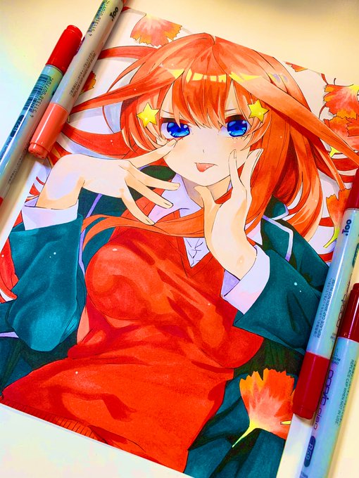 3 10 終わったー! 中野五月ちゃん模写! 赤のコピックがたくさん死亡しました🙏 #五等分の花嫁 #模写 #中野五月 #コピック 20/04/21 17:27