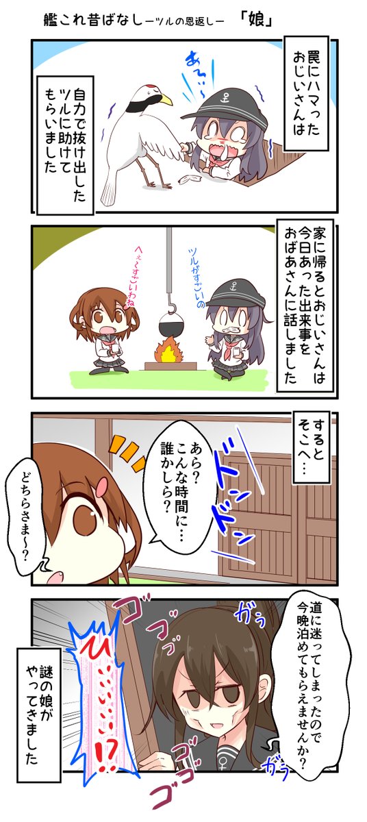『艦これ昔ばなし ~ ツルの恩返し ~』 新作の艦これ漫画描きました。 全10話予定 ①「罠」 #艦これ