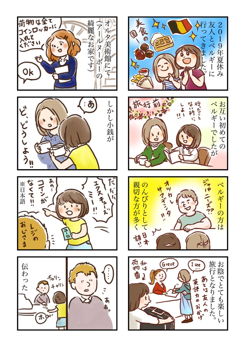 【再掲】もう4年前のことになりますが、夏休みにベルギーに行ってきた思い出をエッセイ漫画にしました。 ベルギーは真夏でも涼しかったし、ご飯も美味しく親切な人が多く、おすすめです(o´∀`)ノ #漫画が読めるハッシュタグ