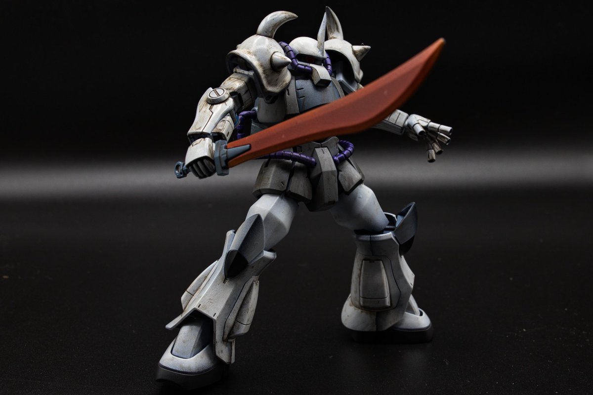 グフリバイブ版 全塗(色変更)+ウェザリング練習としてやってみましたがどんなもんでしょう? ヒートサーベルは初のグラデ塗装 凄味が出たので概ね満足! #ガンプラ好きな人たちと繋がりたい #ガンプラの画像貼るとRTされると聞いて #ガンプラはどんな自由な発想で作ってもいいんだ