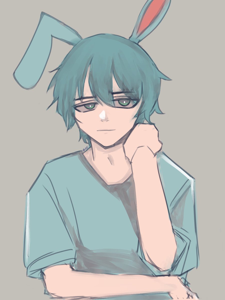 1 4 76.お友達とワンドロ お題 / うさぎ (水色、癖毛) #一日一絵 #イラスト #illustration #創作男子 22/12/28 23:54