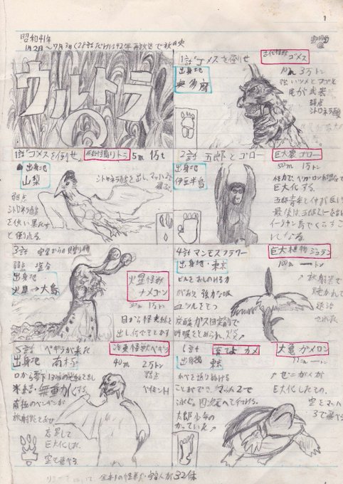 昔描いた手作りの怪獣図鑑「怪獣メモ」ウルトラQ編 #ウルトラQ #円谷プロ #模写