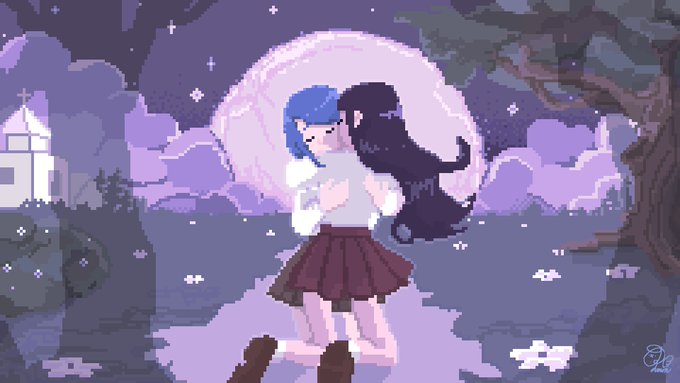 2 13 💜🌙☁️FHD://キミトツナガルセカイ:i☁️🌙💜 #イラスト #illustration #ドット絵 21/05/27 03:05