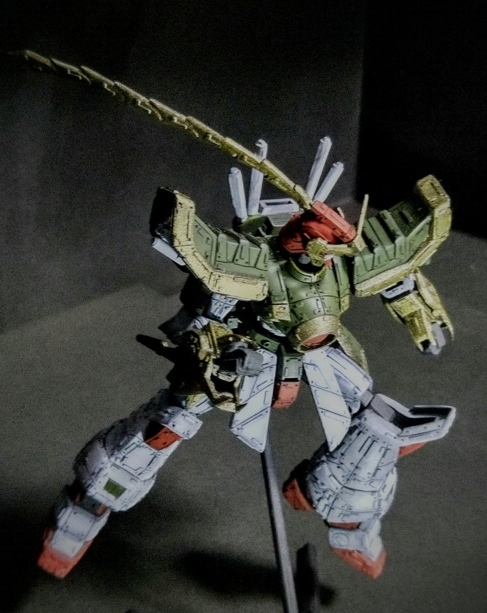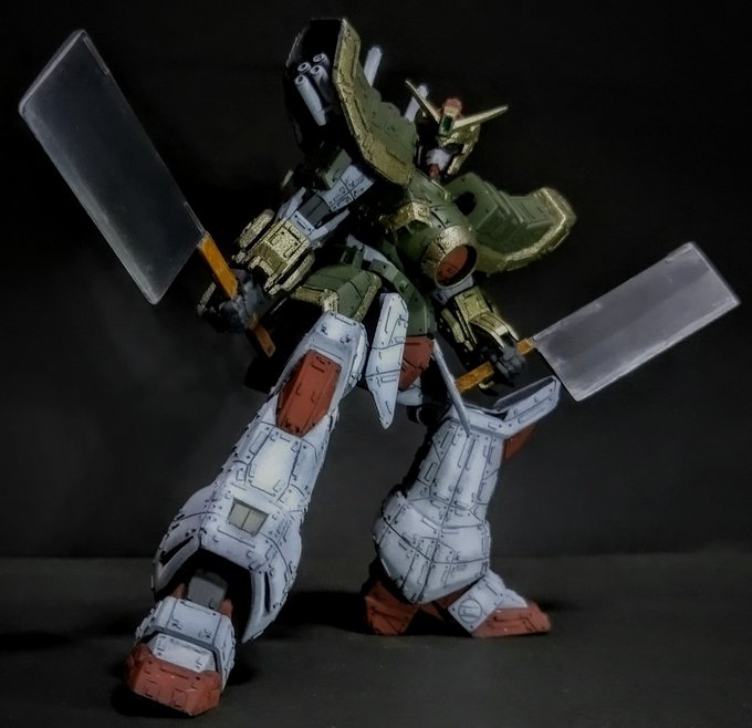 皆様おはようございます😊😊😊 天気が大荒れですね💦💦 どうぞお気をつけて良い1日を お過ごしくださいね🙏 ドラゴンガンダムが本当に完成しました😊😊 塗装も少し暗めにしてネタ武器の 中華包丁の二刀流になります😊😊 #ガンプラ #旧キットドラゴンガンダム その2に続く