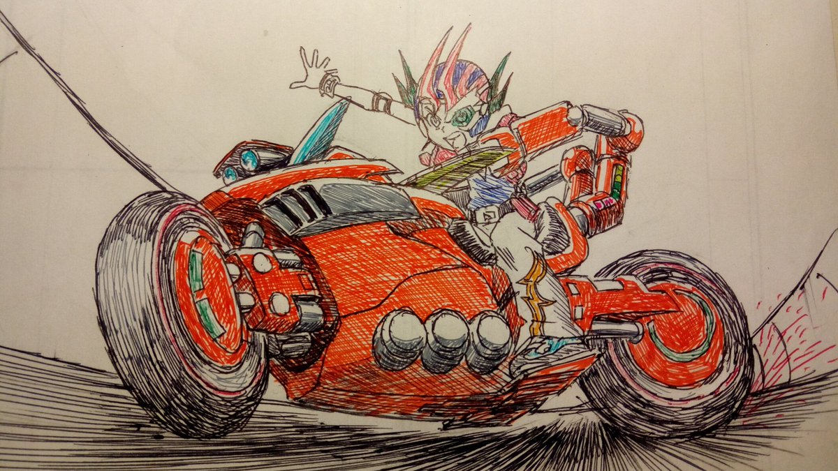 らくがき 結局天兵君もライディング デュエリストになったとさ。#ヘルメットをかぶりましょう