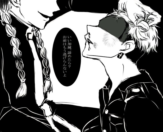 5 51 らくがき 囚われの🍯(蘭みつ) 同じような雰囲気でも暗くしたかったんや…許してほしい (あと🍯の髪型を修正したかった) 22/11/27 04:43