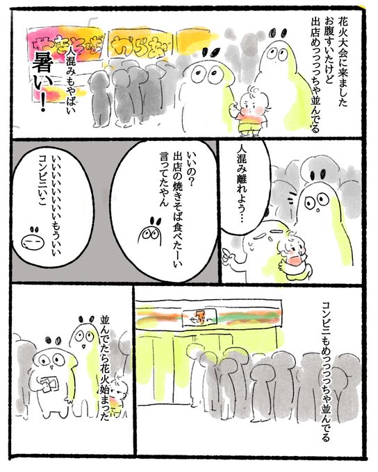 0 3 花火大会 花火見に来たんか人見に来たんか分かんなかったけど綺麗でした #育児漫画 #育児絵日記 23/08/06 17:56