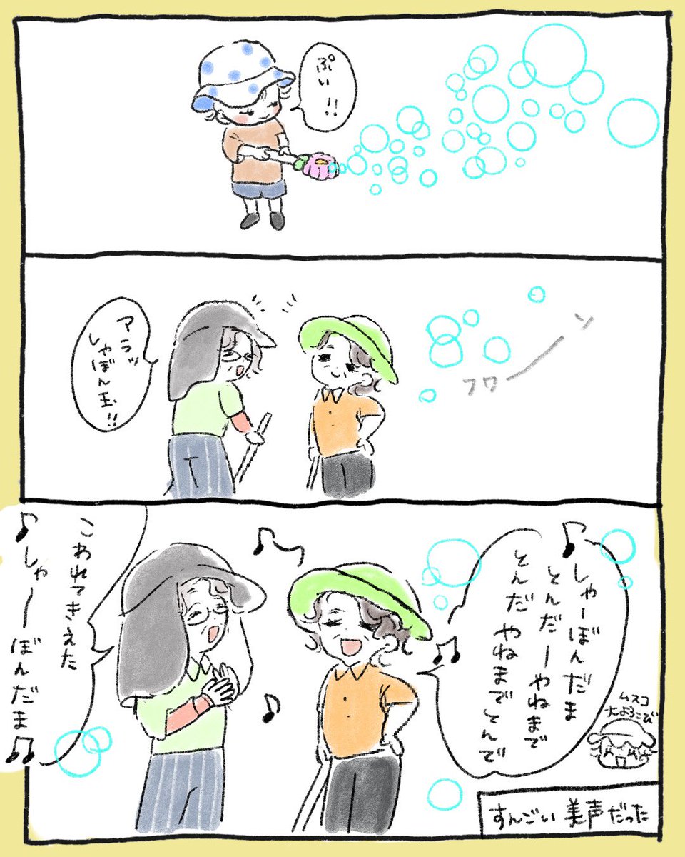 シャボン玉とマダム #育児絵日記 #育児漫画