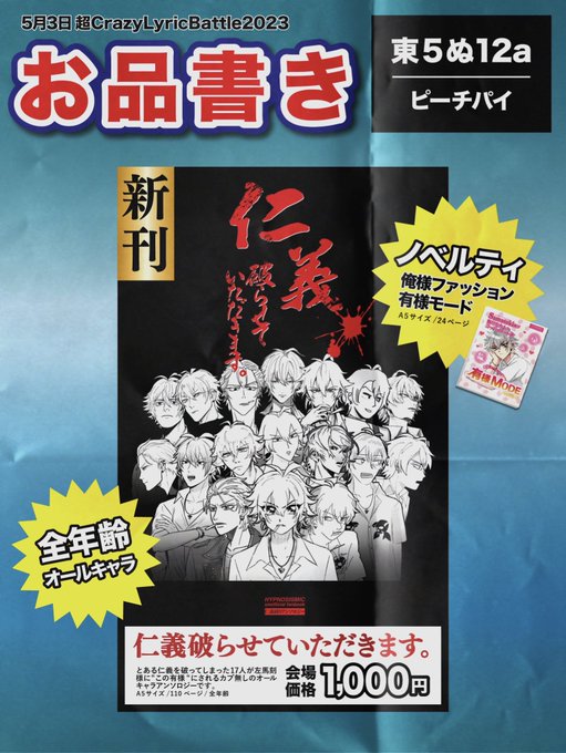 💔5/3超クレリリ2023💔 私が主催させていただいたオールキャラアンソロジー(@jingi_yaburuo)を頒布します! 『仁義 破らせていただきます。』 私は⚖️を担当しました! ▶︎東5ぬ12a ▶︎ピーチパイ 詳しいサンプル pixiv.net/artworks/10747… ⚠️ 原作通りでは無い服装やあらゆるパロディを含みます