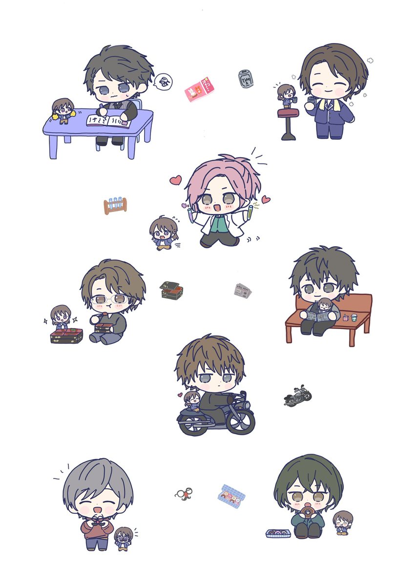ミニミニ玲ちゃんとマトリ+都築兄弟分のイラスト完成しました〜👏