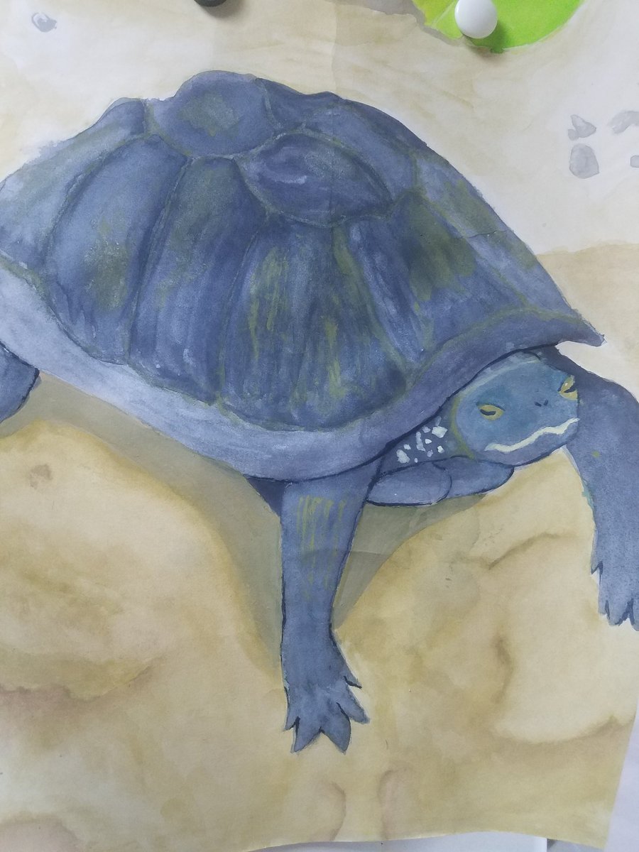頑張って塗った褒めて( ¨̮ ) #水彩画 #亀