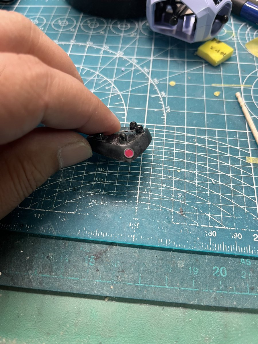 HGUC #ズゴック です。 今日はモノアイ可動してみました。 ①モノアイレールの裏にネオジム磁石を接着。 ②ハイキューパーツの4mmの円形エッチングパーツを使用。 ③任意の場所に貼り付け。 ④モノアイレールの中心部は平面にやすると安定。 #ガンプラ #ガンプラ好きと繋がりたい