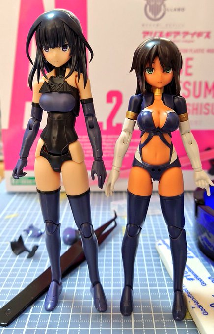 #アリスギアアイギス #メガミデバイス 全然体型が違う…! カエデちゃん全体的に薄い! 両方カワイイ ( ̄ー ̄)bグッ!