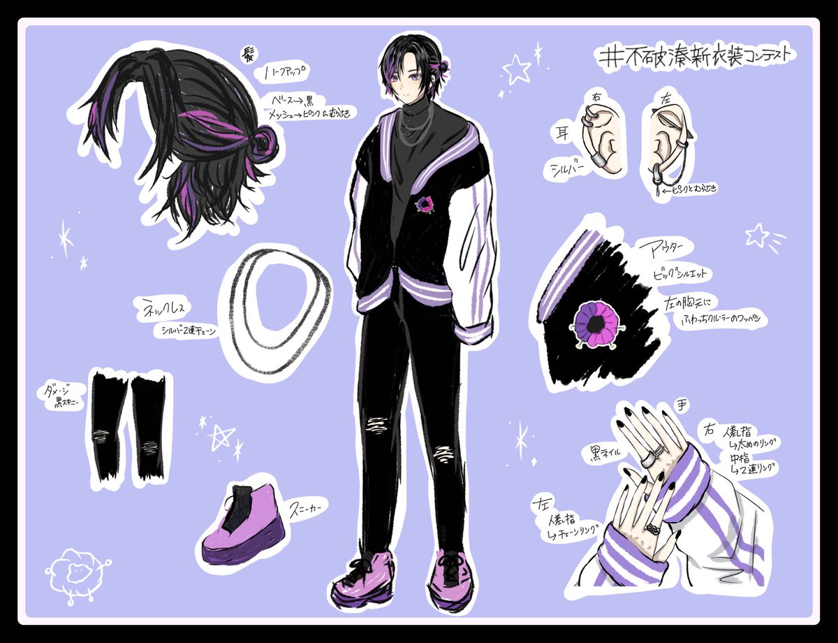 #不破湊新衣装コンテスト #絵スコート 黒髪ハーフアップ。