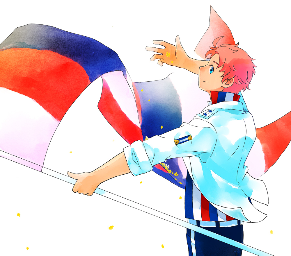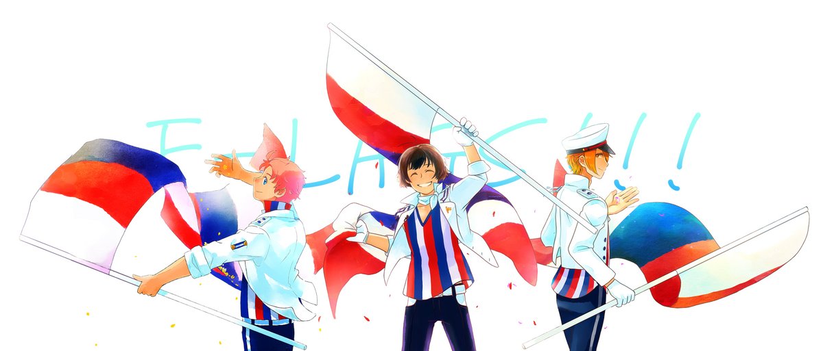 今年描いた旗誕絵むりくりくっつけてみた 舞っているのはそれぞれの誕生花でした(控えめすぎた