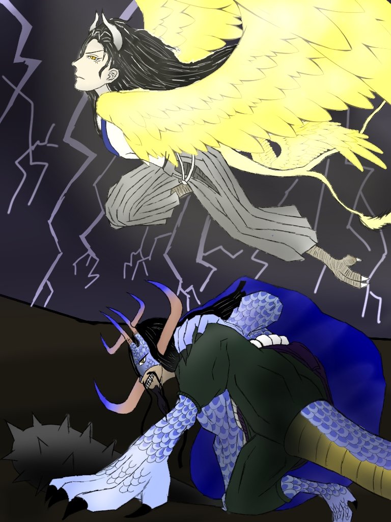 1 12 #イラスト @HMLN_ss_motio 人獣型 カイドウ&レオヴァ 22/06/17 22:58