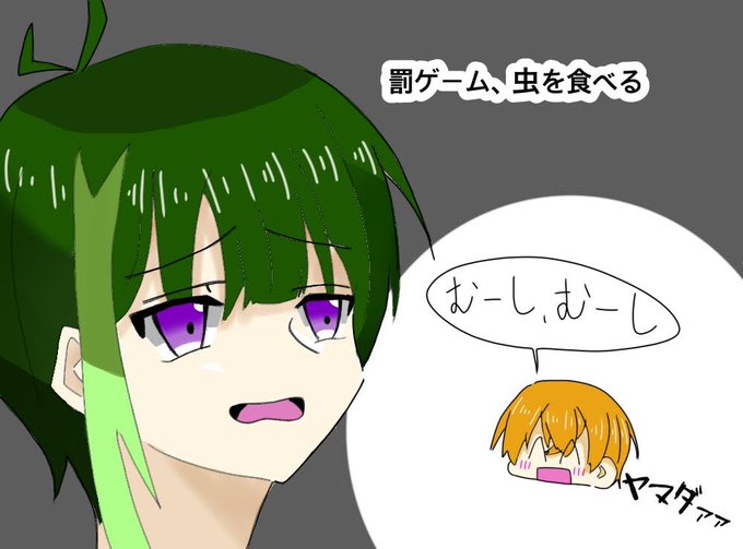 #たくぱんへお届物 #メメリ絵 罰ゲーム食用虫を食べるに萎えるたくぱんと、煽る山田