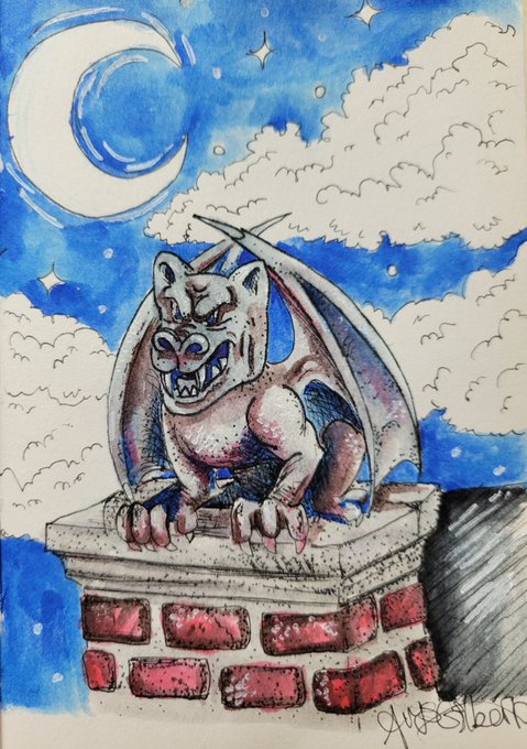INKTOBER 1:GARGOYLE Every year I swear, I try to keep up until I inevitably burn myself out. Cheers to this year and good luck to anyone who's doing #Inktober with me! Tools used: Pigma micron 005 and 08 @sakuraofamerica Brushmarker pro @karinmarkers White gel pen @uniball_uk
