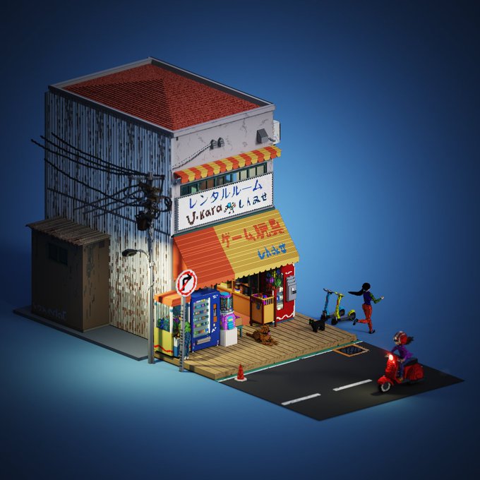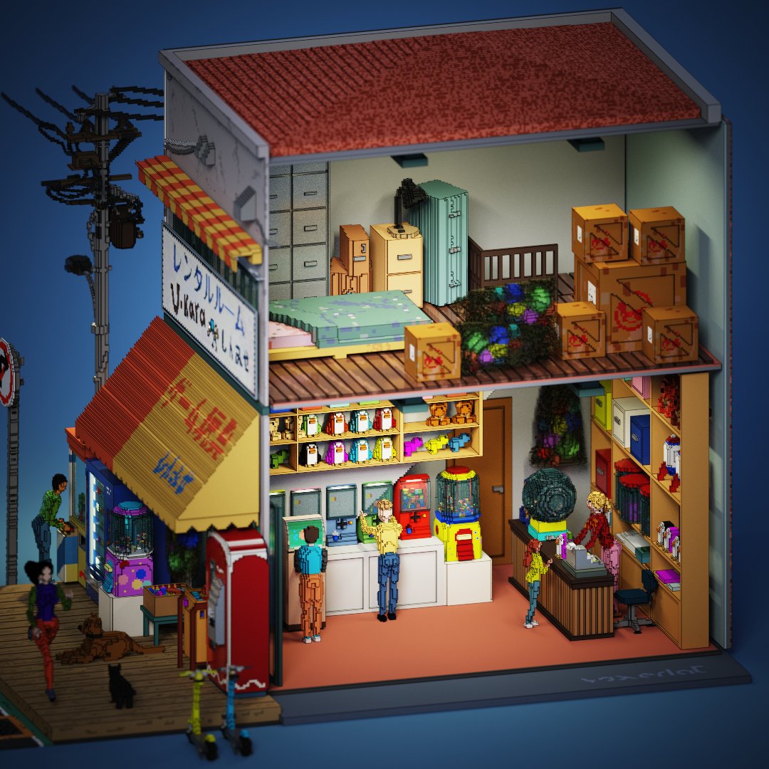 GN frens 🖖🌛🍀🤍🖤 Little Shops Collection No: 01 #voxel #voxelart #voxelartwork #voxelartist #magicavoxelart #nft #nftartist #nftart #magicavoxel #isometric #NFTCommunity #NFTcollection #nftcollectors #lowpoly #3d