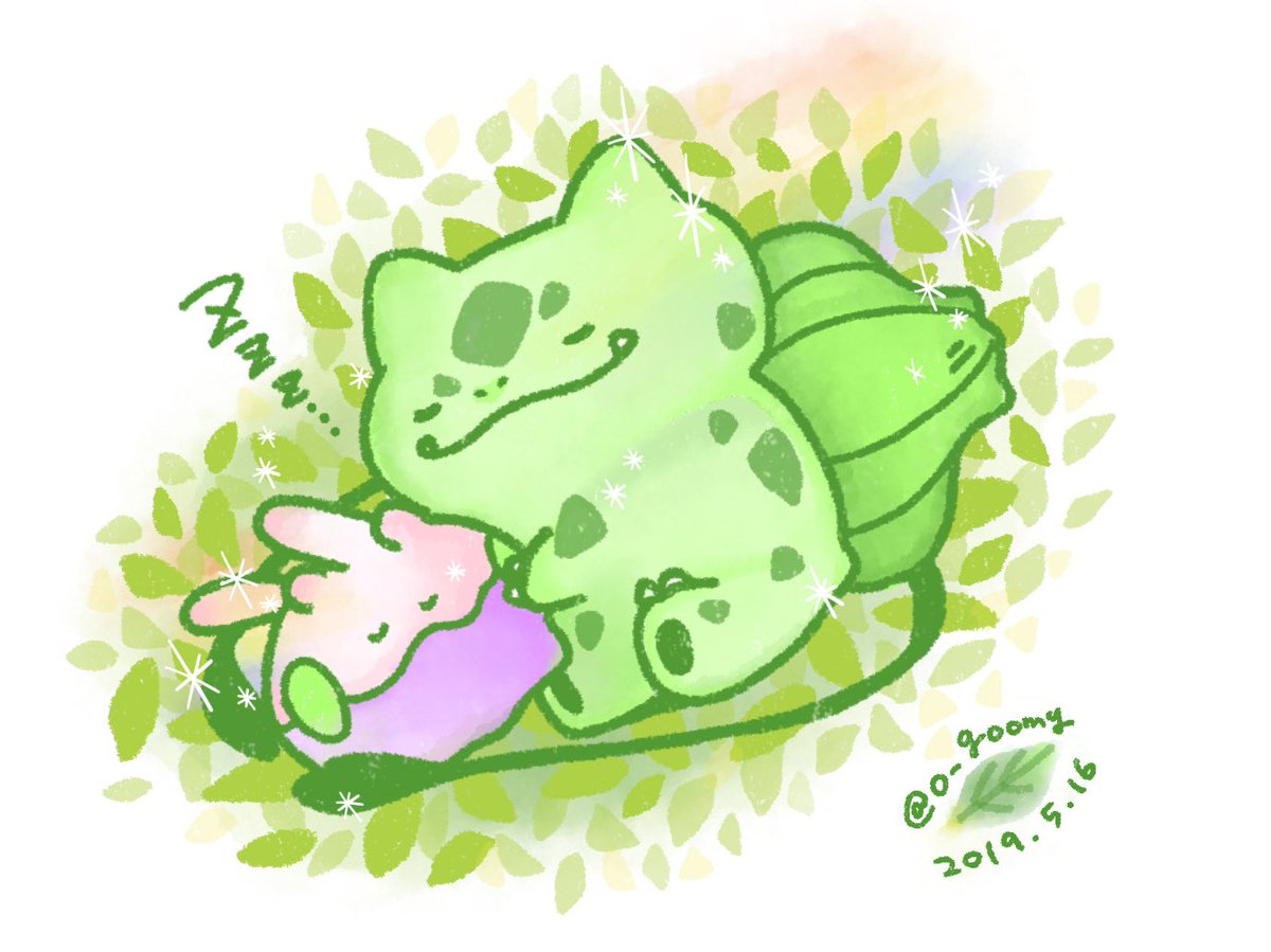 76 327 ヌメラとフシギダネはなかよく お昼寝中😴 #ポケモン版深夜の真剣お絵描き60分一本勝負 19/05/16 23:23