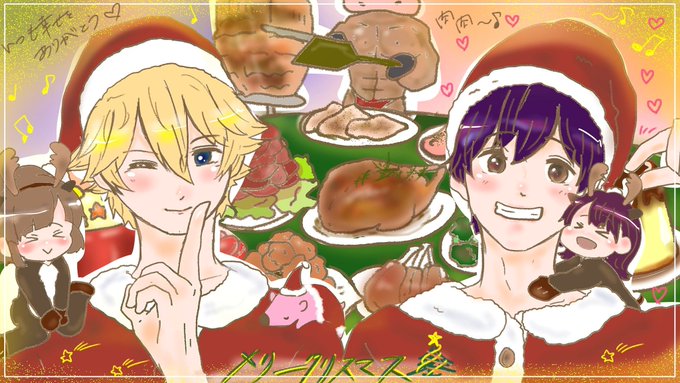 #あすかな肉肉クリスマスパーティー #あすかなアート 🎅🎄🎉メリー肉肉リスマス!!🎄🎂🌟 たくさんのお肉でパーティーする様子を描いてみました〜🍖 〜トナカイさんの姫ピメを添えて〜 🐮奥にあるのはケバブ的なアレです。 あすかな姫ピメ皆さんにとって、クリスマスが素敵な1日になりますように🌠