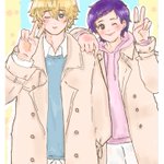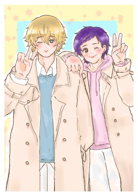ゴシックな感じの衣装をぜひ着てみてほしいです! ブローチやコートのデザイン部分にお互いのモチーフ、パンツを暗めのメンカラにしています💓小物や服の形もそれぞれをイメージして少しずつ変えて考えてみました~🌷 コートを脱いでもかわいいです💄✨ #あすかなアート #あすかなステージ衣装