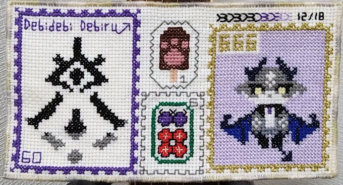 でびちゃんの切手シート風クロスステッチ🧵👿 #でびるさまにささげるえ #にじさんじ手芸部