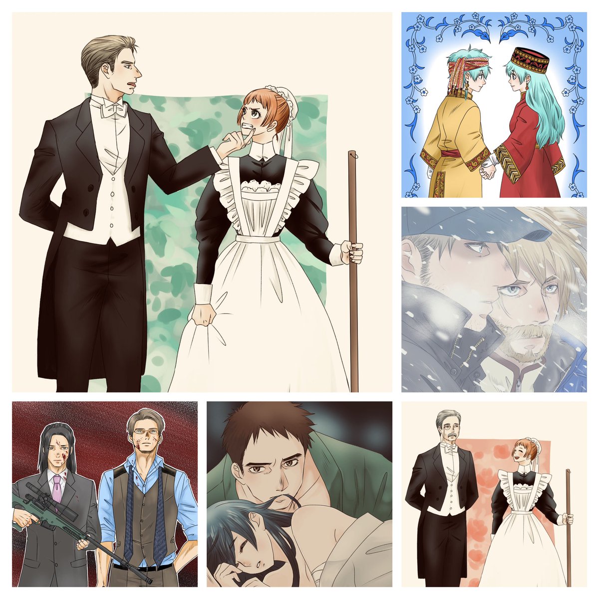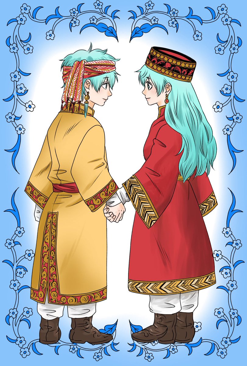 #今月描いた絵を晒そう リエ馨さん(@BNdarkestdays)とこのインティスくん(勝手に描いたやつ)と民族衣装練習。民族衣装っても近代のお祭り用。 どうしても民族衣装が描きたかったんだね…。民族衣装はチョクギュゼル…