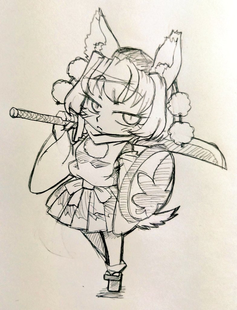 #ラクガキ で、#東方 の #犬走椛 かな? 座ってるように見えなくて悲しい… #椛 #東方Project