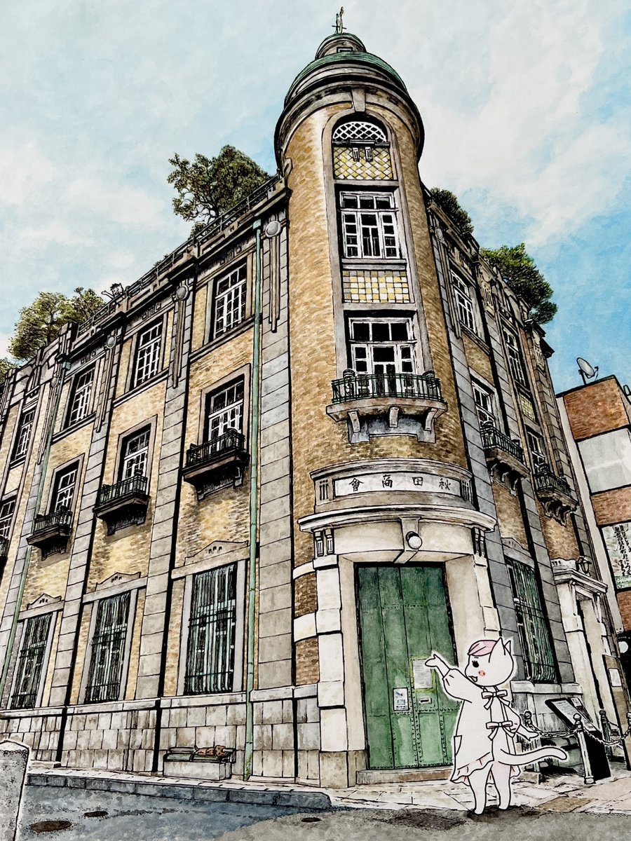 【唐戸公園】 唐戸は市場やカモンワーフが有名やけど商店街の中の噴水もほっこりしてぶちえぇほっちゃ~✩.*˚ #下関 #イラスト #illustration #水彩画 #風景画 #watercolor #ヴィフアール #レンブラント #猫のいる暮らし #絵描きさんと繋がりたい