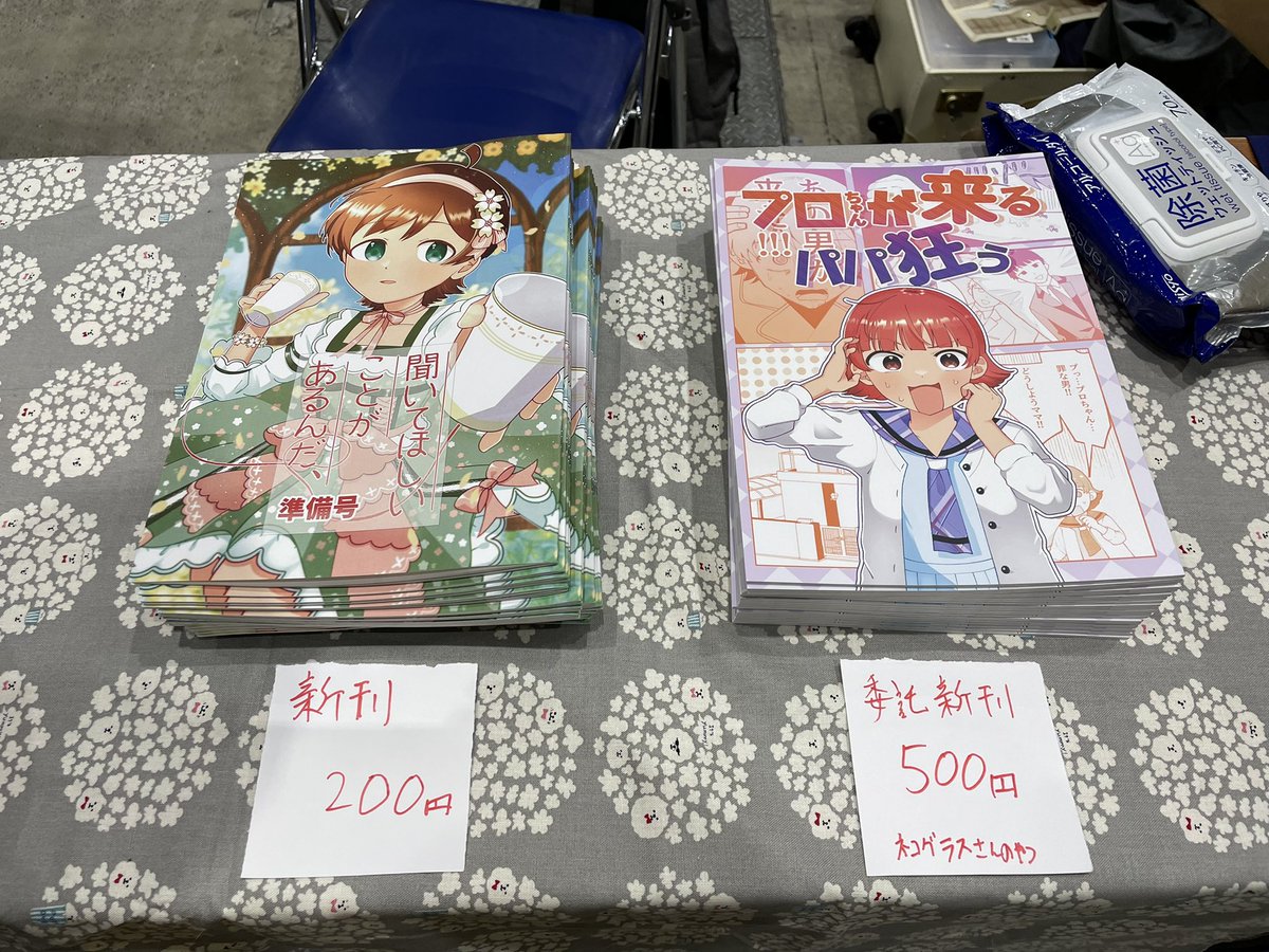 C99 2日目金曜 東Y48bごきげんようじょ お品書きです。新刊(ミリオンライブ本)既刊(木下ひなたちゃん本)共に500円、また敬告言さん(@uwkpt)さんの野々原茜ちゃん既刊も置いております。明日はどうぞよろしくお願い致します! twitter.com/o_takumin/stat…