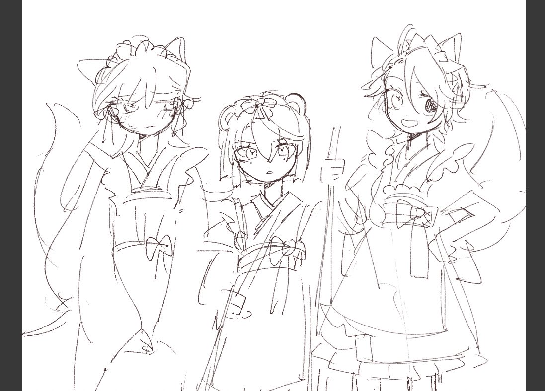 明日が最後のメイドの日なのに間に合わなさそうだから線画と色ラフだけでも供養しちゃうか…… ※女体化 #mhyk_にょた