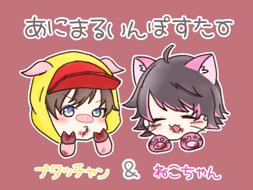 この間のうる船、ハチねろのインポスタースキンが2人ともアニマルで可愛かったのでね〜ෆ ̖́- 🐽あにまるいんぽすたー🐾 #みてみてねろちゃん #ハッチャンの絵 #うるさくてすみま船